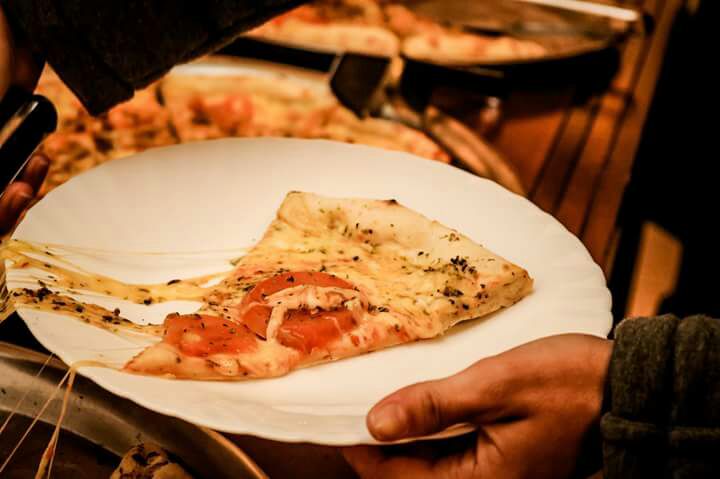 Esta opção é muito versátil para quem ama pizza, mas não quer abrir mão do tradicional jantar. Pensando nisso, pode-se elaborar a abertura desta ilha juntamente com a abertura da balada, fora a praticidade que os “slices de pizzas” – descartáveis em forma de fatia de pizza – trazem aos convidados que já estão no momento mais descontraído da festa.